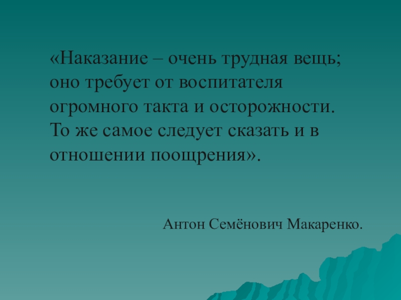 Слайд 12«Наказание – очень трудная вещь; оно требует от воспитателя огромного такта