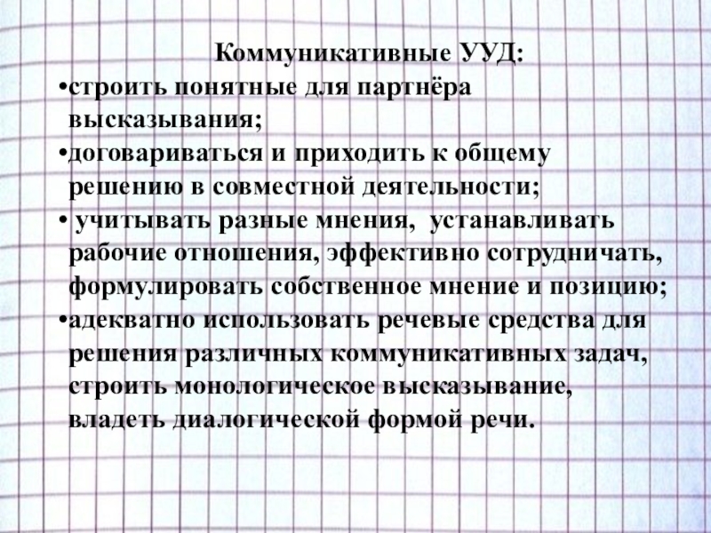 Коммуникативные УУД: