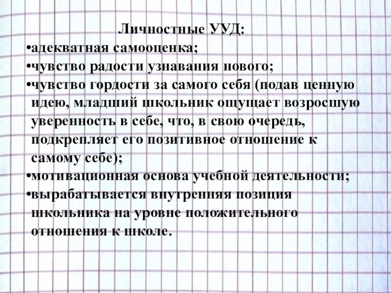 Личностные УУД: