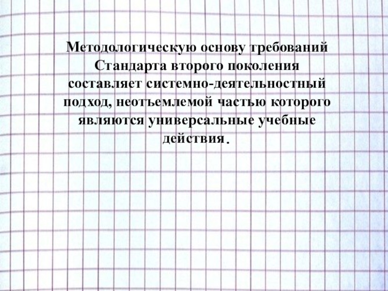 Методологическую основу требований Стандарта второго поколения составляет системно-деятельностный подход, неотъемлемой частью