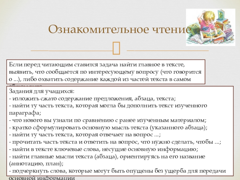 - найти главные мысли текста (абзаца), ориентируясь на его название (аннотацию, план);