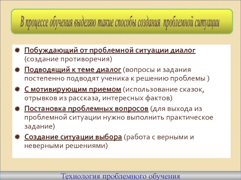 В процессе обучения выделяю такие способы создания проблемной ситуации