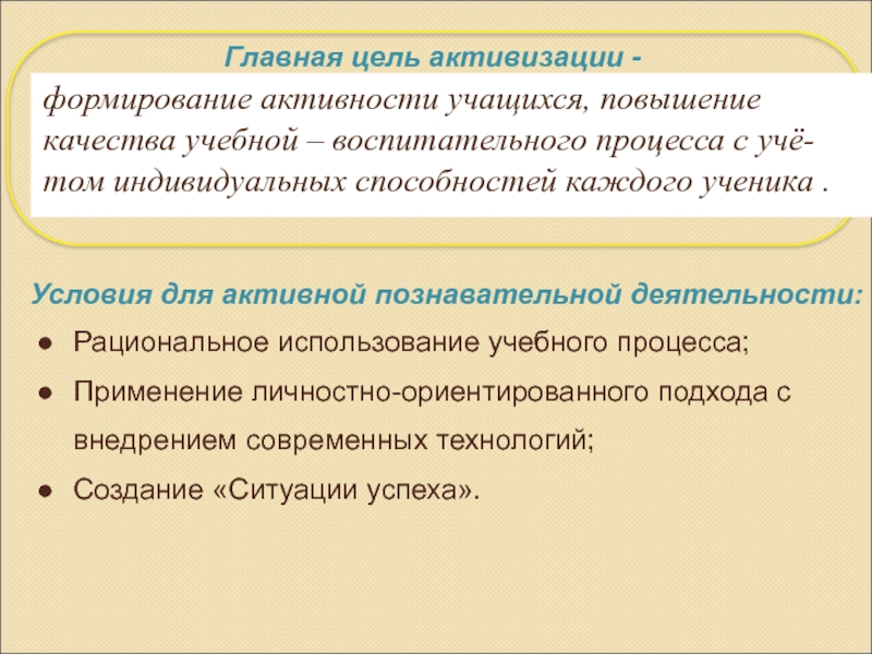 Главная цель активизации -