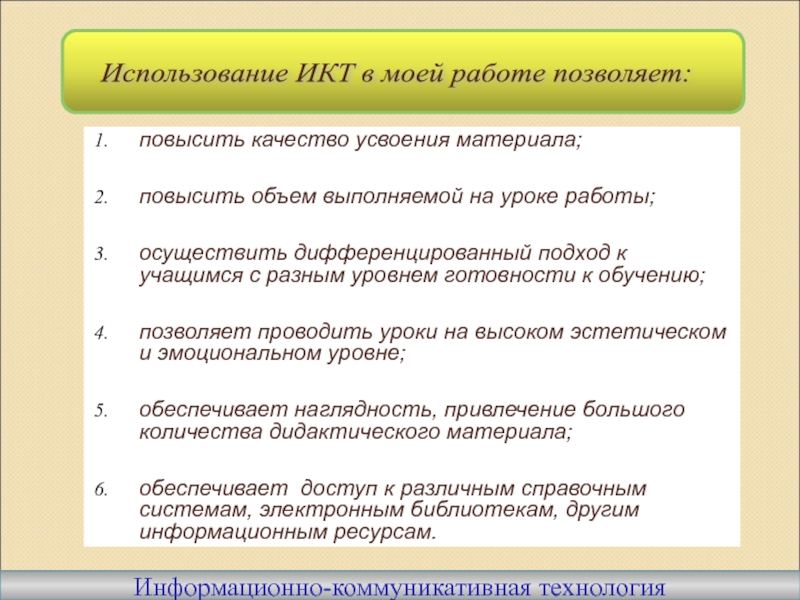Использование ИКТ в моей работе позволяет: