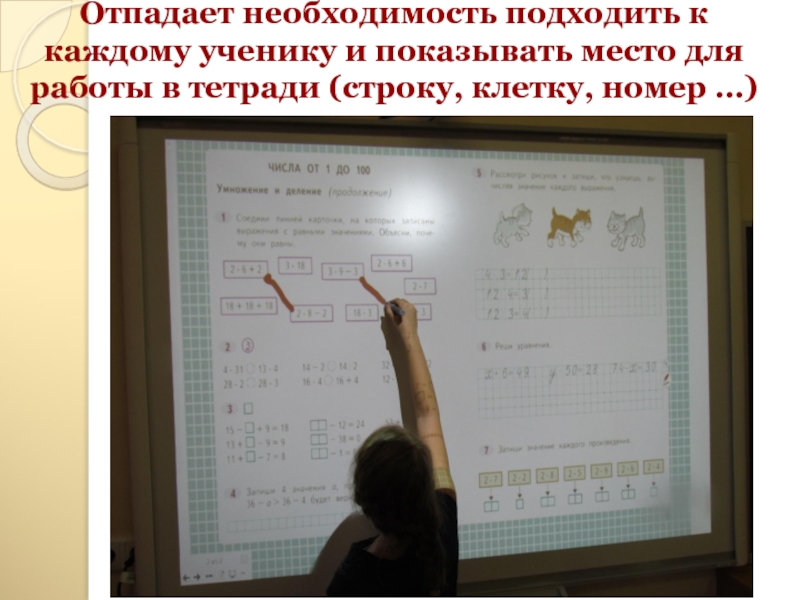 Слайд 7Отпадает необходимость подходить к каждому ученику и показывать место для работы