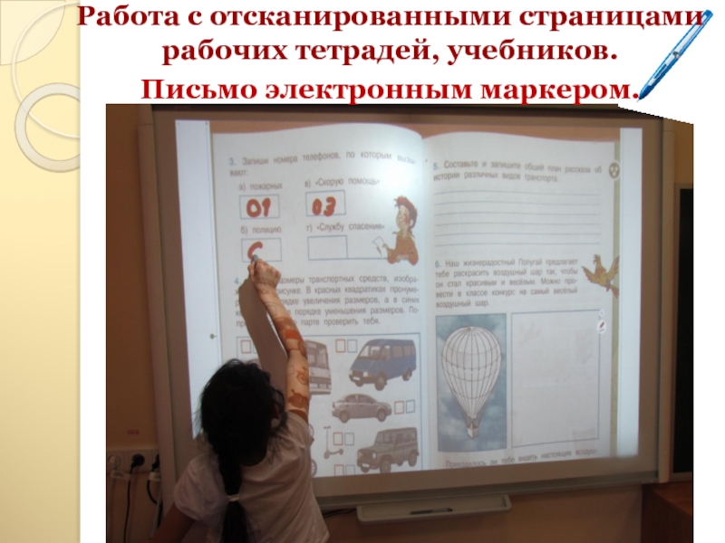Работа с отсканированными страницами рабочих тетрадей, учебников.Письмо электронным маркером.