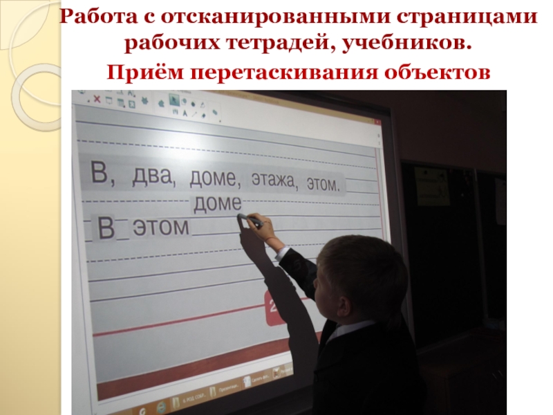 Работа с отсканированными страницами рабочих тетрадей, учебников.Приём перетаскивания объектов