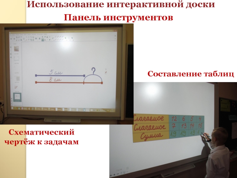Использование интерактивной доскиПанель инструментовСоставление таблицСхематический чертёж к задачам