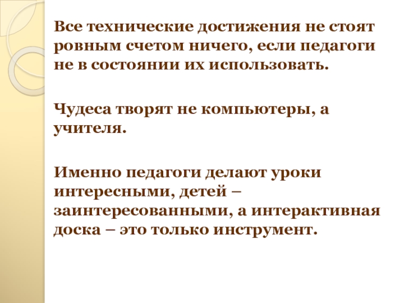 Все технические достижения не стоят ровным счетом ничего, если педагоги не в состоянии их использовать. Чудеса творят