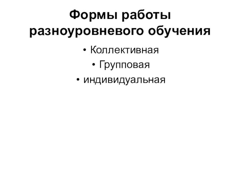 Формы работы разноуровневого обученияКоллективнаяГрупповаяиндивидуальная
