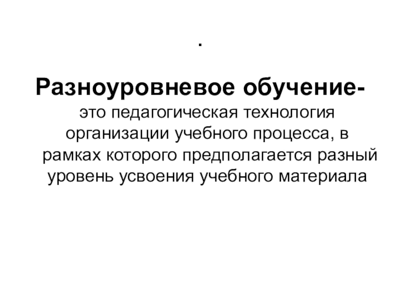 .Разноуровневое обучение- это педагогическая технология организации учебного процесса, в рамках которого предполагается разный уровень усвоения учебного материала
