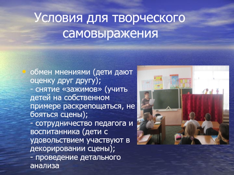 - сотрудничество педагога и воспитанника (дети с удовольствием участвуют в декорировании сцены);