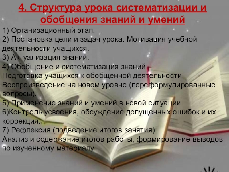 Слайд 184. Структура урока систематизации и обобщения знаний и умений