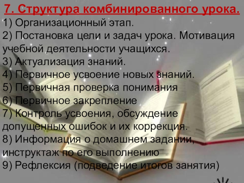 6)Контроль усвоения, обсуждение допущенных ошибок и их коррекция.