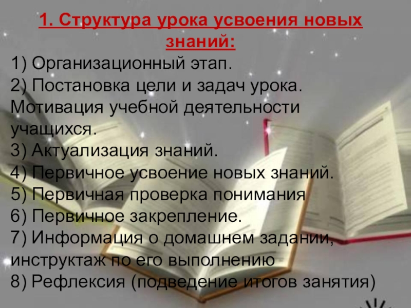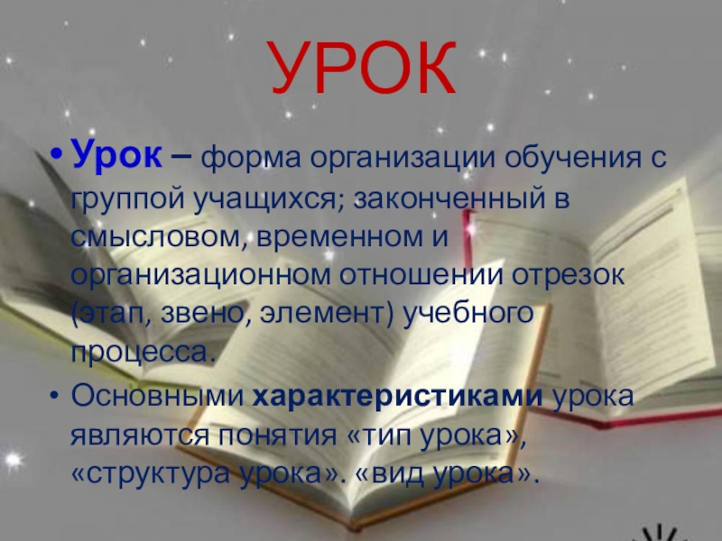 Урок – форма организации обучения с группой учащихся; законченный в смысловом, временном