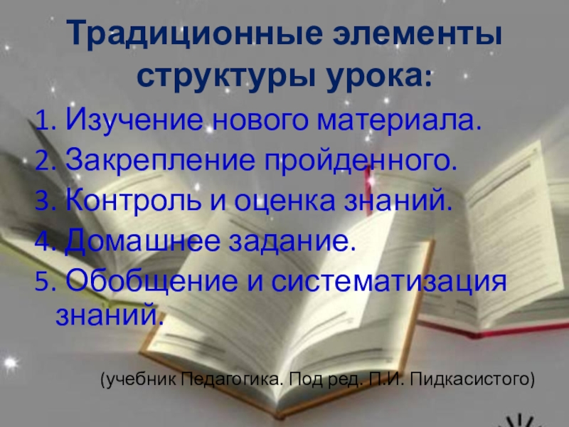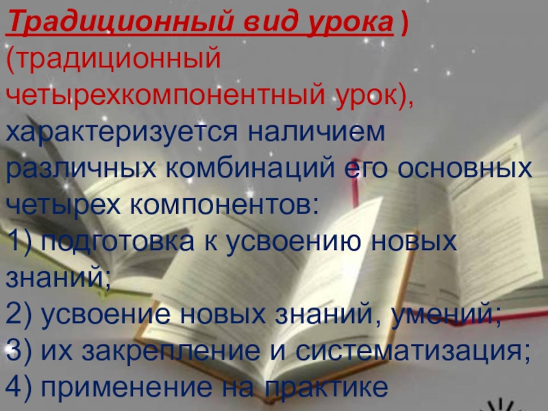(традиционный четырехкомпонентный урок), характеризуется наличием различных комбинаций его