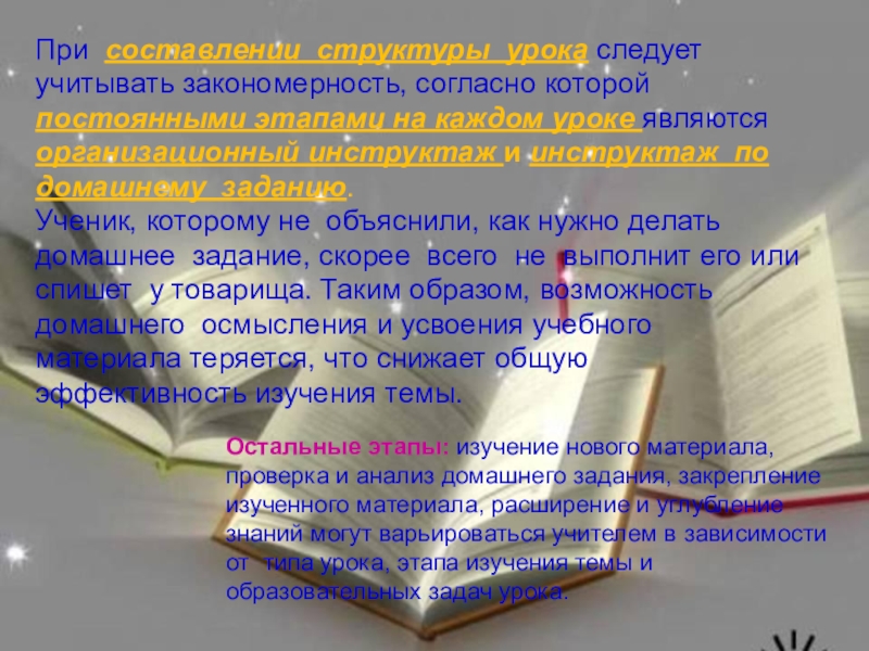 Слайд 12При составлении структуры урока следует учитывать закономерность, согласно которой постоянными этапами