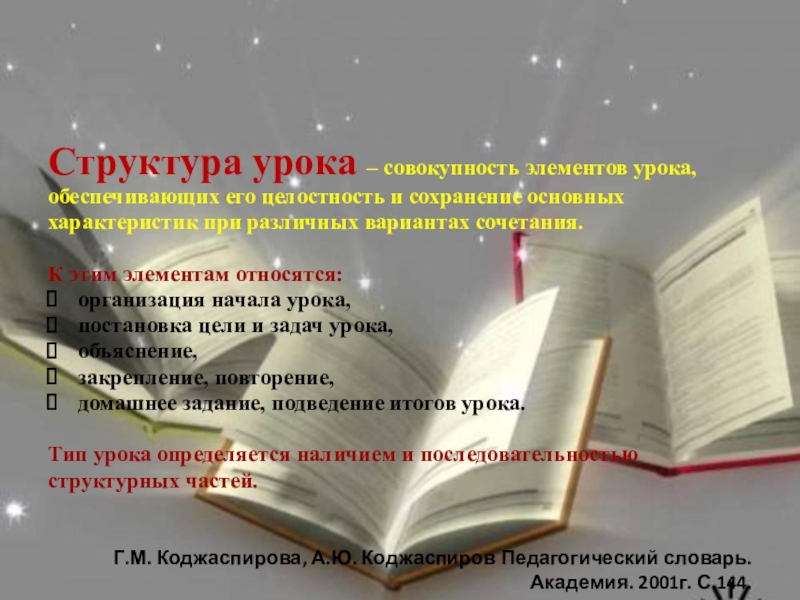 Основными характеристиками урока являются понятия «тип урока», «структура урока». «вид урока».