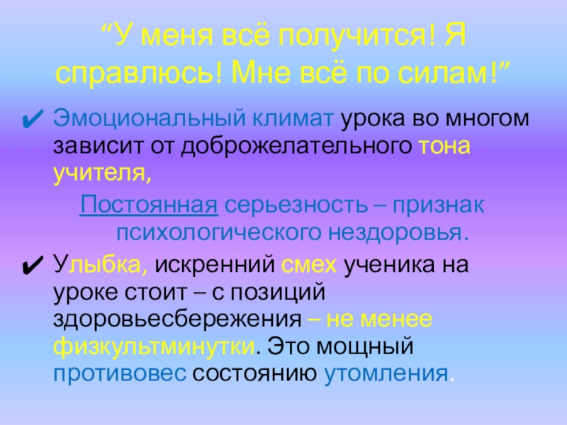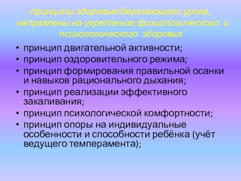 Слайд 14принципы здоровьесберегающего урока, направлены на укрепление физиологического и психологического здоровья