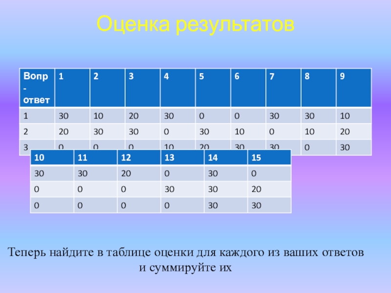 Теперь найдите в таблице оценки для каждого из ваших ответов