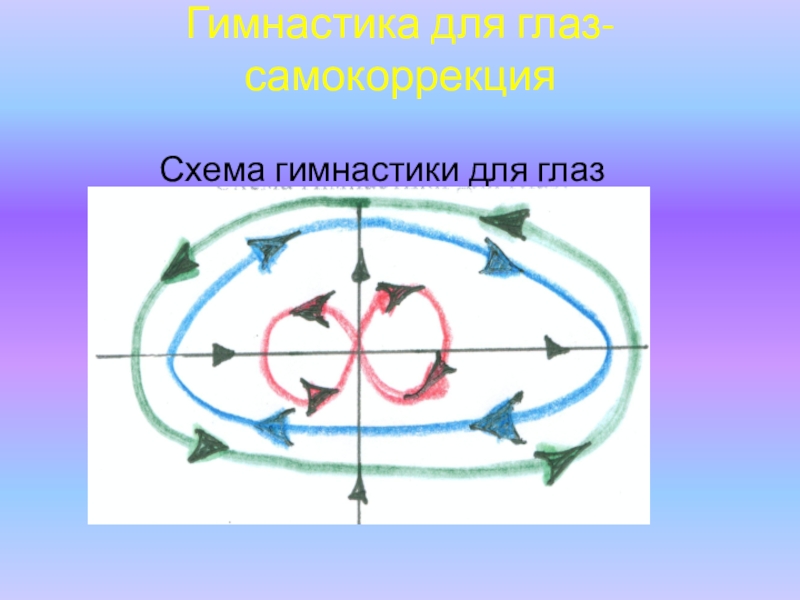 Слайд 20Гимнастика для глаз- самокоррекция