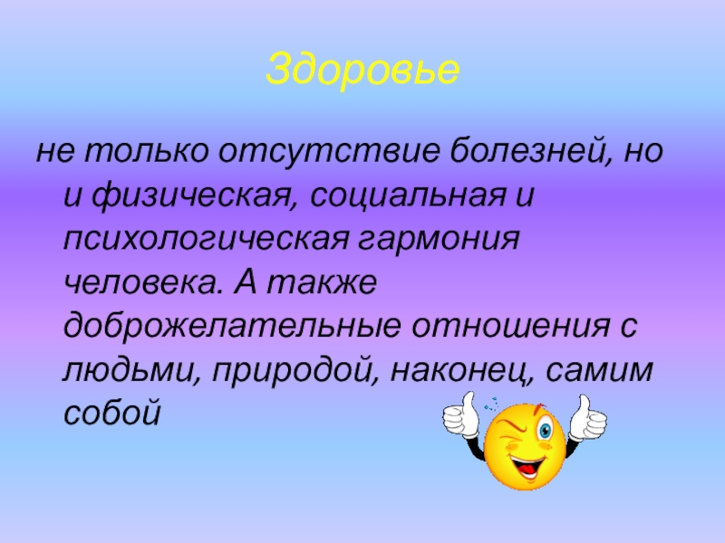 не только отсутствие болезней, но и физическая, социальная и психологическая гармония