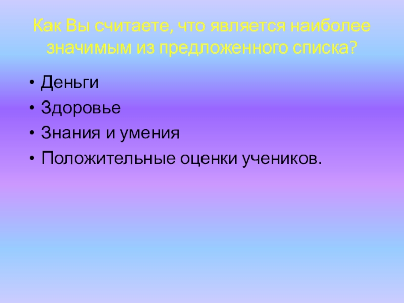 Как Вы считаете, что является наиболее значимым из предложенного списка?