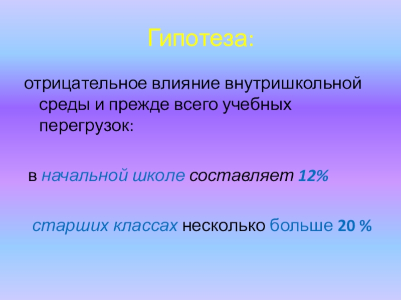 отрицательное влияние внутришкольной среды и прежде всего учебных перегрузок: