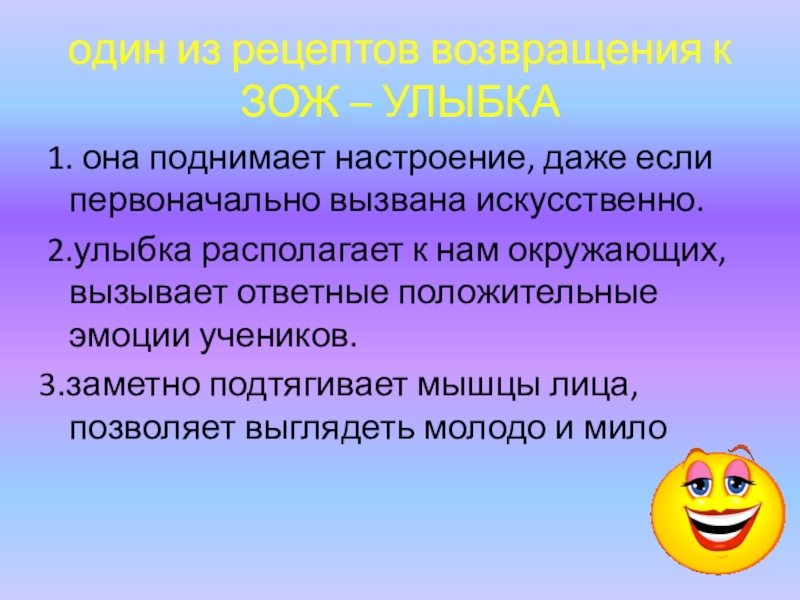 Слайд 61один из рецептов возвращения к ЗОЖ – УЛЫБКА
