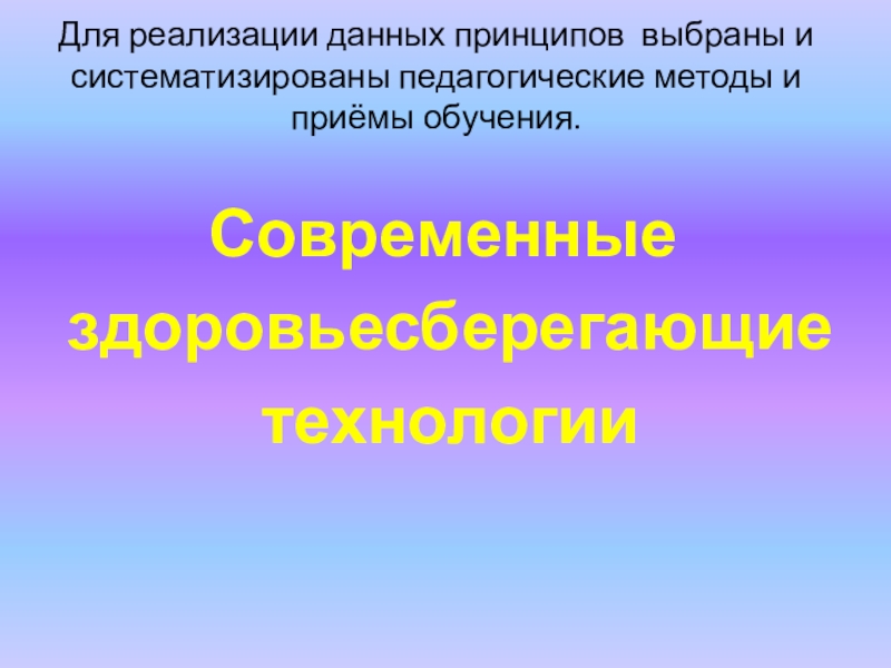 Слайд 15Для реализации данных принципов выбраны и систематизированы педагогические методы и приёмы