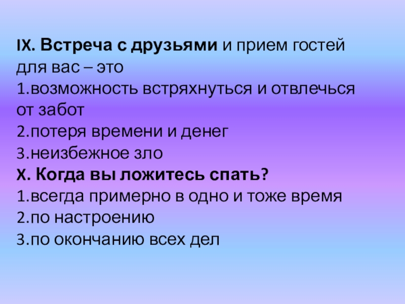 Слайд 52IX. Встреча с друзьями и прием гостей для вас – это