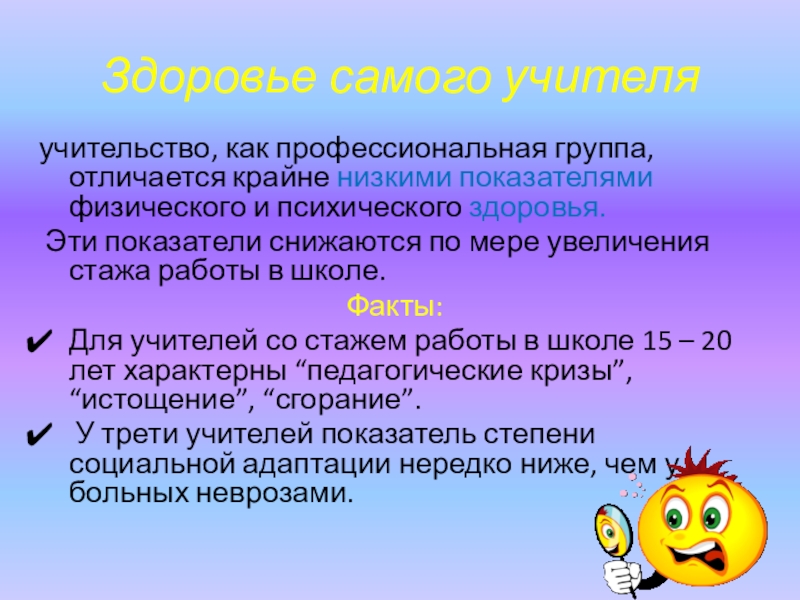 Слайд 47Здоровье самого учителя