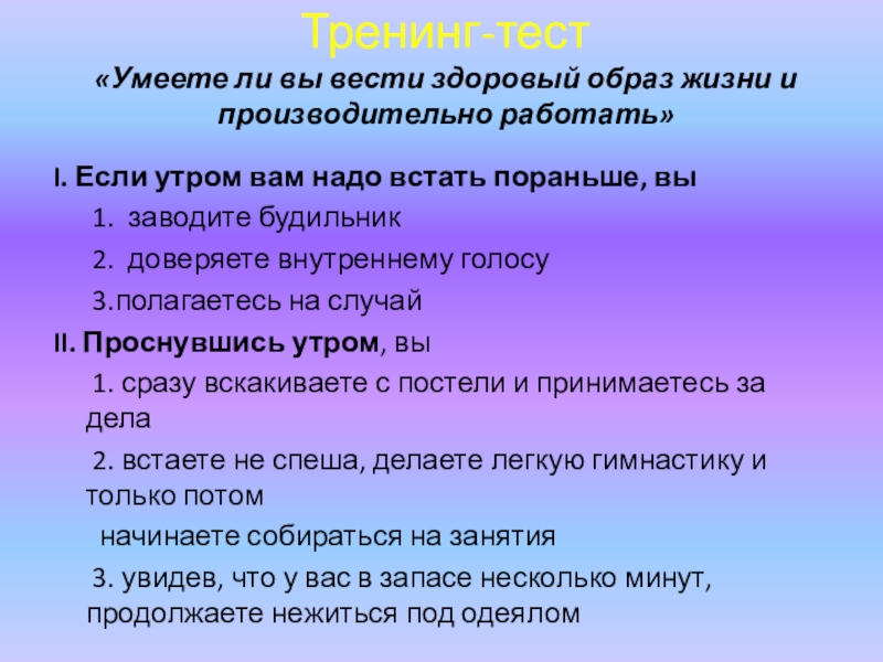 «Умеете ли вы вести здоровый образ жизни и производительно работать»