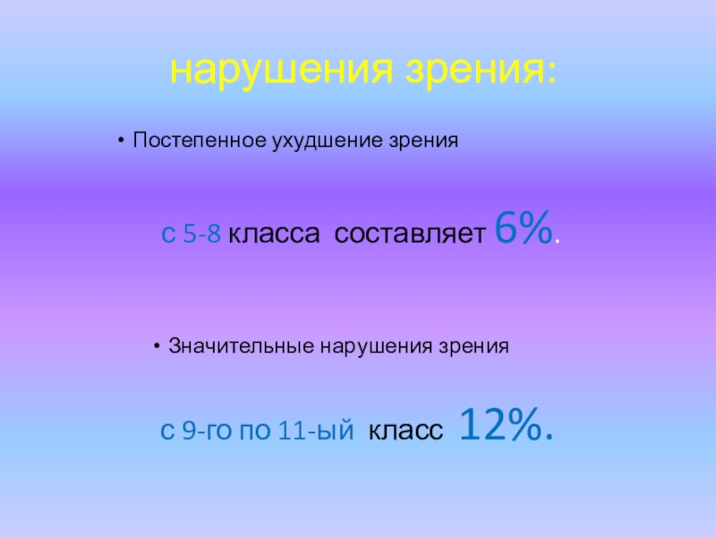 Слайд 7 нарушения зрения: