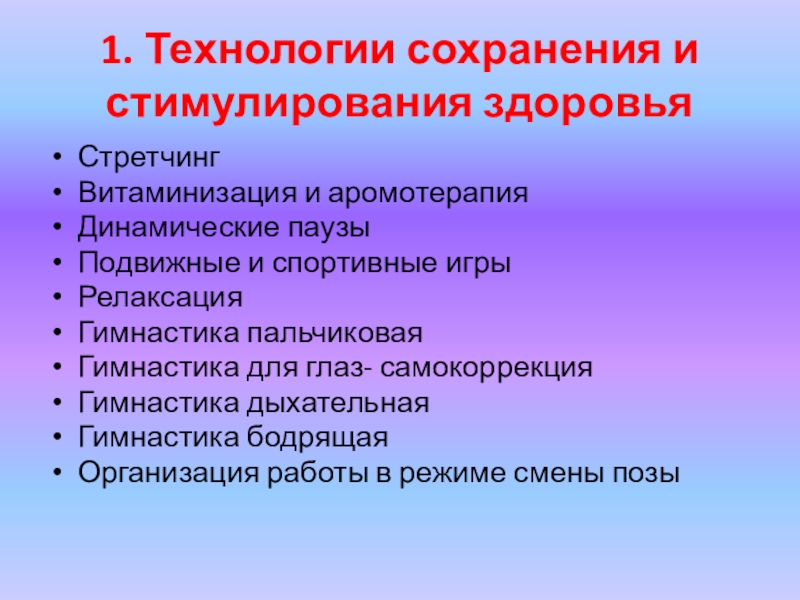 Слайд 161. Технологии сохранения и стимулирования здоровья