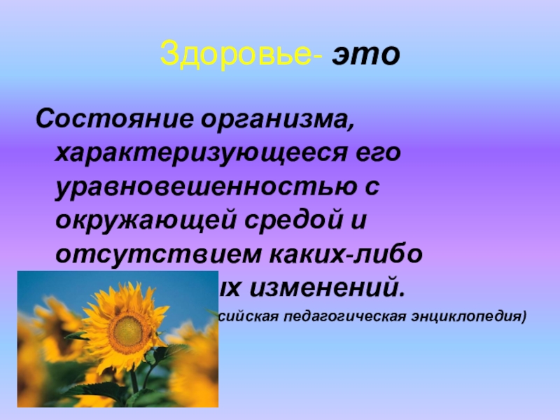 Состояние организма, характеризующееся его уравновешенностью с окружающей средой и отсутствием