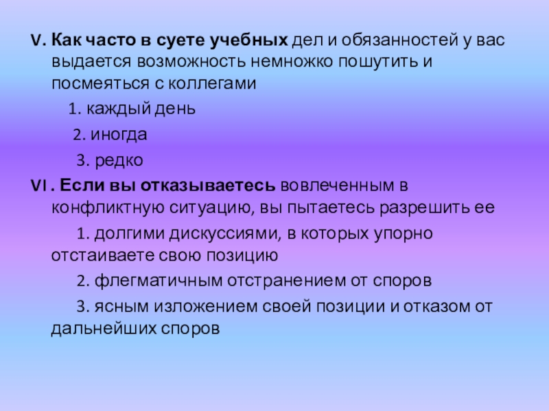 Слайд 50V. Как часто в суете учебных дел и обязанностей у вас