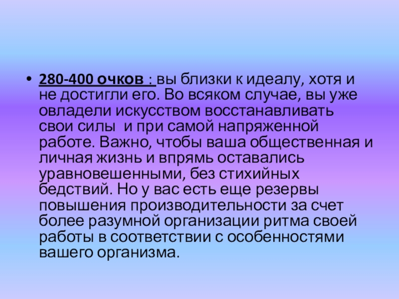 Слайд 57280-400 очков : вы близки к идеалу, хотя и не достигли