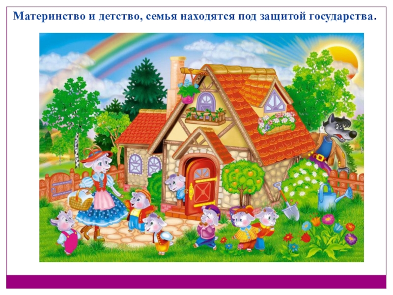 Слайд 16 Материнство и детство, семья находятся под защитой государства.