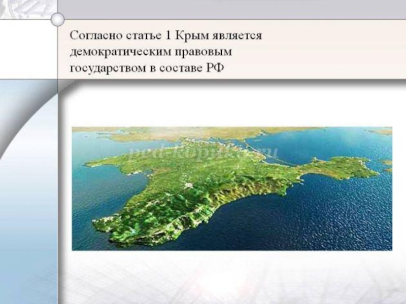 Слайд 8Источник власти – народ Крыма. Согласно Статье 2 высшим проявлением власти