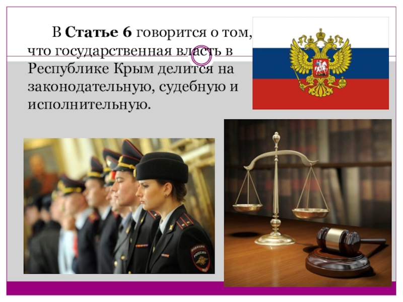 Слайд 10В Статье 6 говорится о том, что государственная власть в Республике