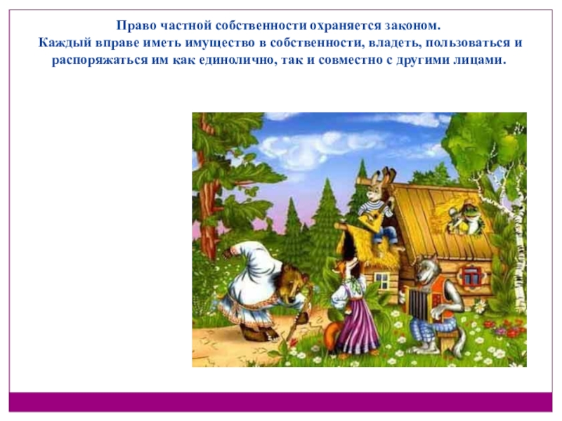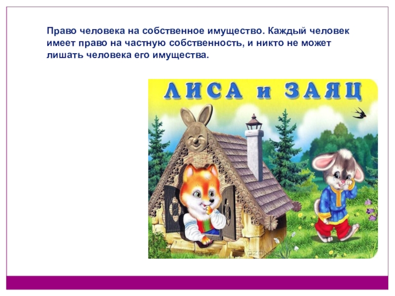Слайд 13Право человека на собственное имущество. Каждый человек имеет право на частную