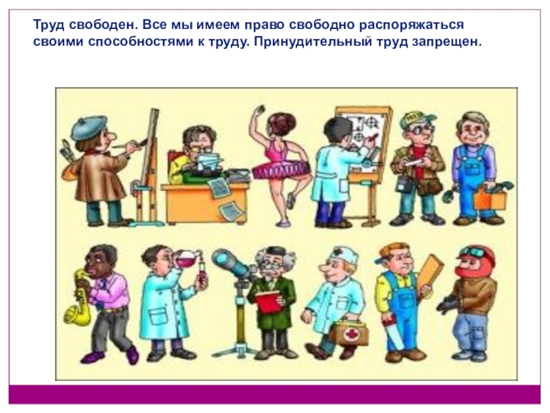 Слайд 19Труд свободен. Все мы имеем право свободно распоряжаться своими способностями к
