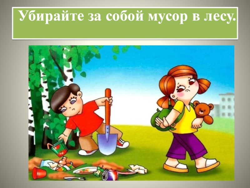 Слайд 15Убирайте за собой мусор в лесу.