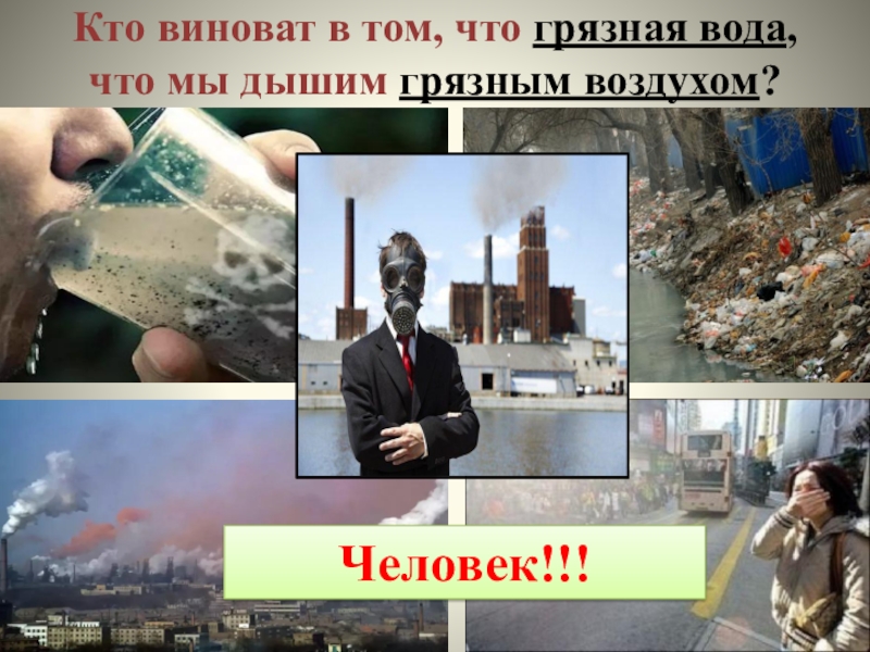 Кто виноват в том, что грязная вода, что мы дышим грязным воздухом? Человек!!!