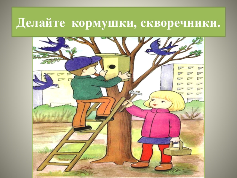 Слайд 22Делайте кормушки, скворечники.