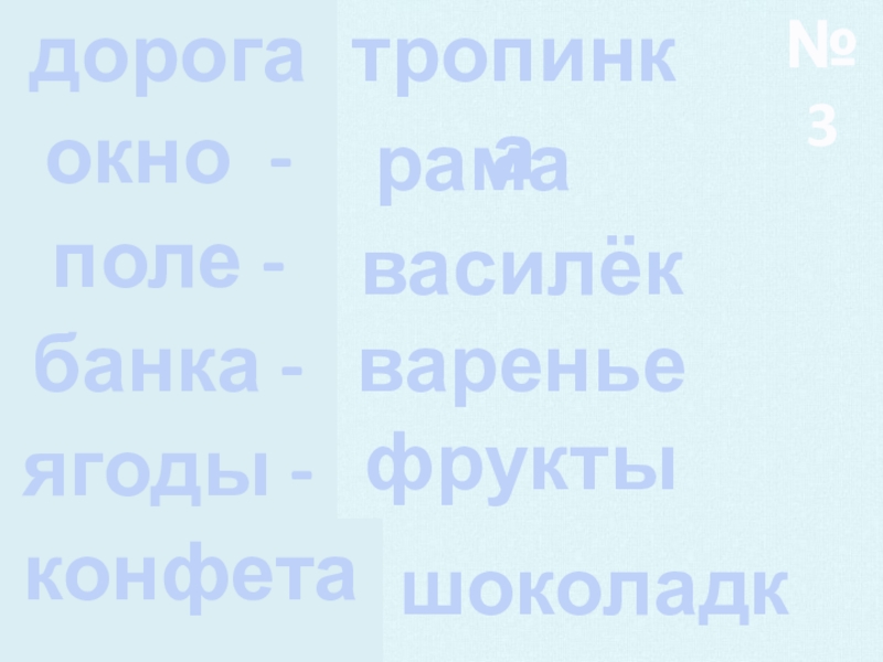 №3дорога -ягоды -поле -окно -банка -конфета –тропинкарамавасилёквареньефруктышоколадка