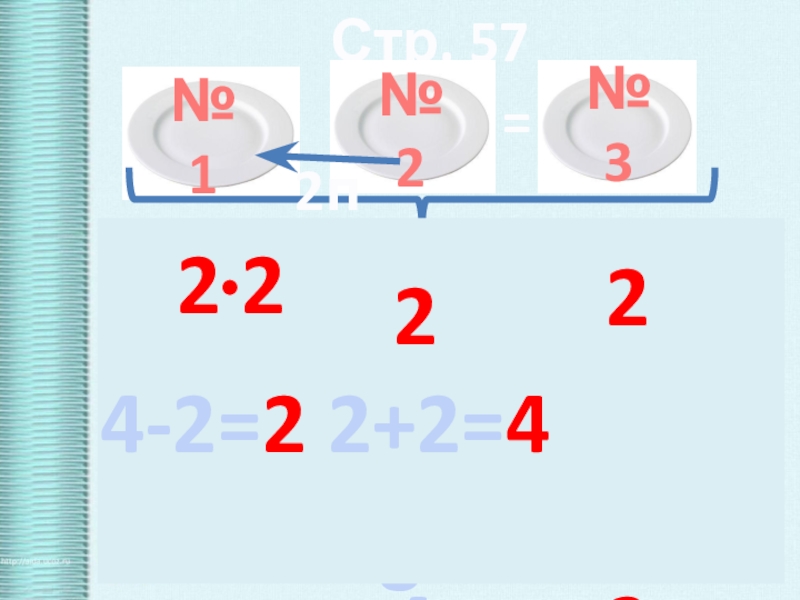 Стр. 57 №10№1№2№32п.=ХХ2 Х2Х+Х+Х=84Х=8Х=8:4Х=28п.2 2224-2=22+2=4