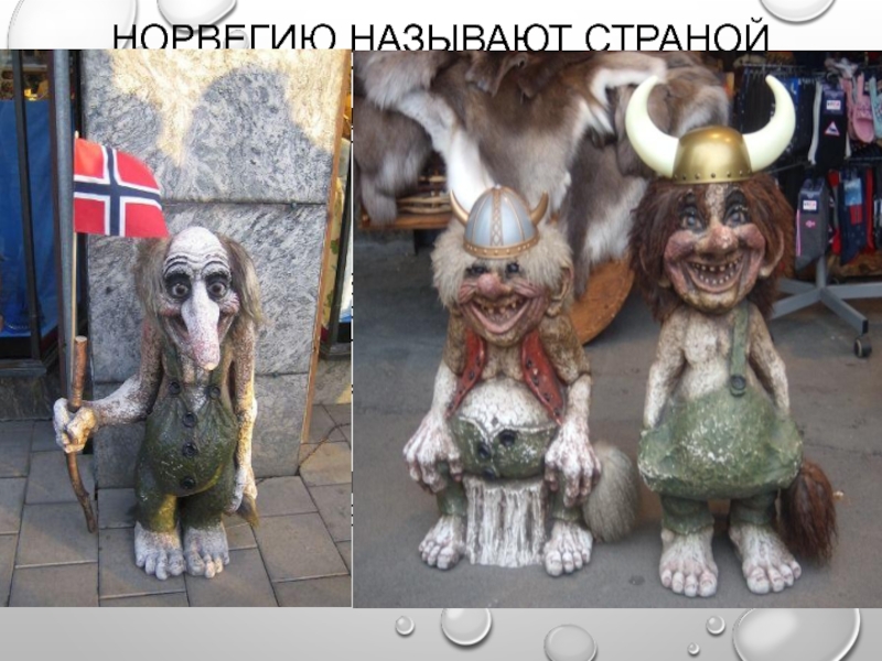 Слайд 15НОРВЕГИЮ НАЗЫВАЮТ СТРАНОЙ ТРОЛЛЕЙ. ВЫРЕЗАННЫЕ ИЗ ДЕРЕВА ФИГУРКИ ТРОЛЛЕЙ — ИЗЛЮБЛЕННЫЙ