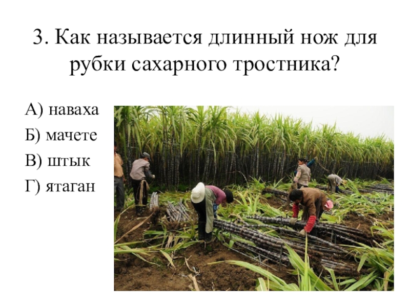 Слайд 43. Как называется длинный нож для рубки сахарного тростника?